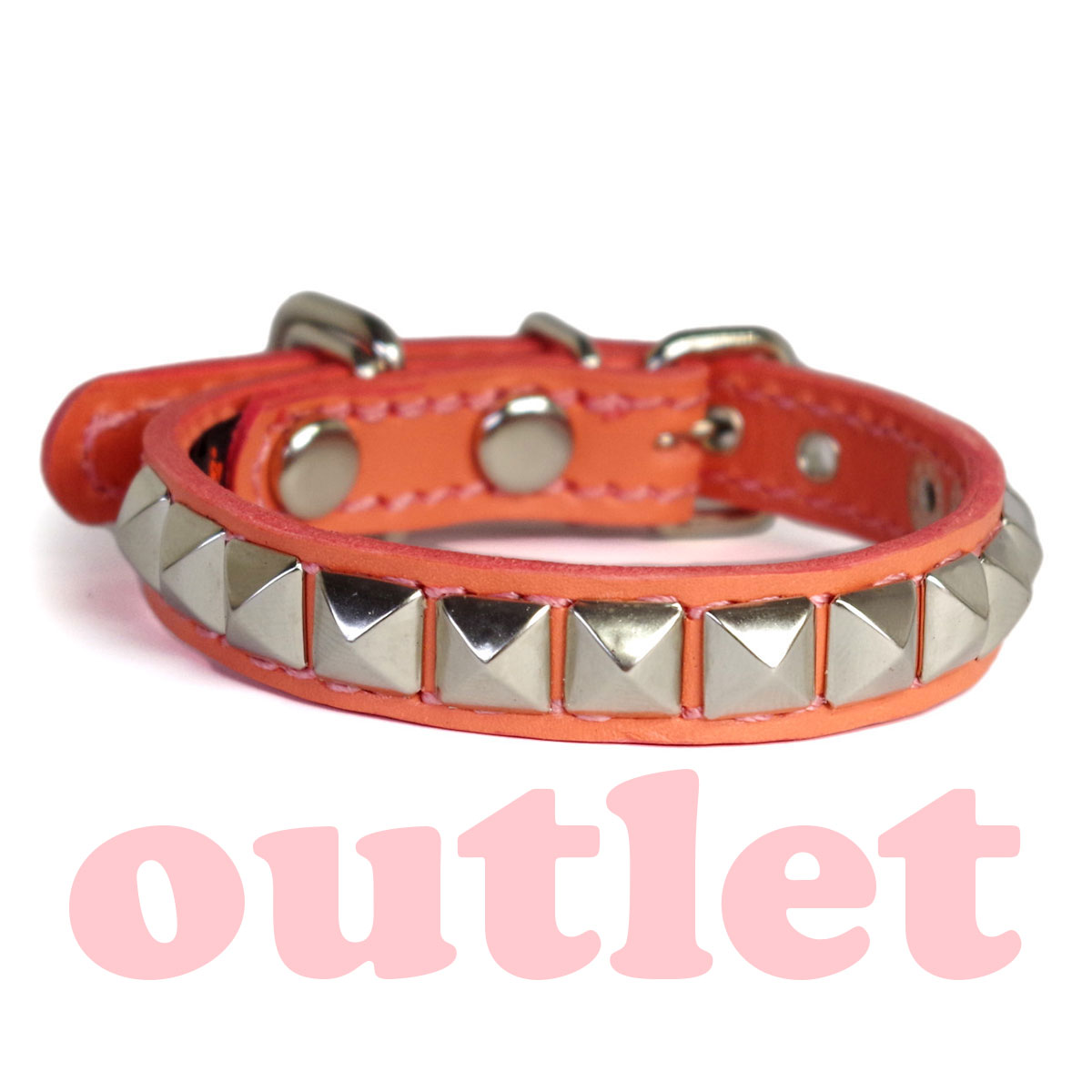 アウトレット:小型犬用1.5cm幅スタッズ革首輪(23cm)