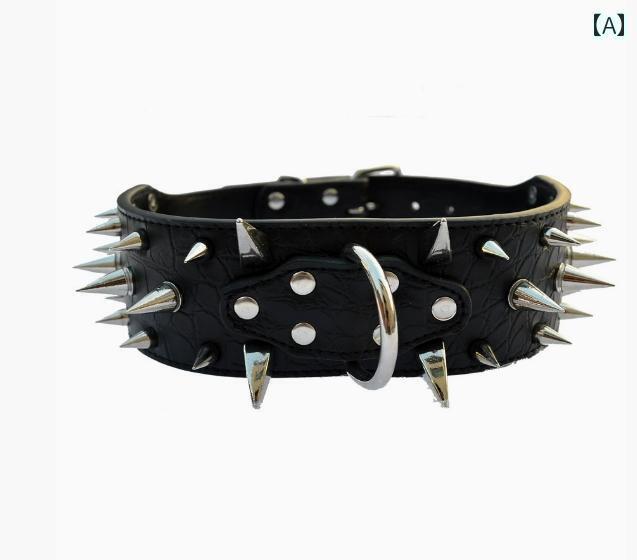 犬用 首輪 大型犬 中型犬 小型犬 PUレザー 合成皮革 スパイク スタッズ 牛角風デザイン 強靭 ・・・