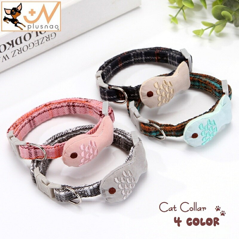 送料無料 首輪 猫用 ペット用品 ねこ カラー ペット用チョーカー 魚 モチーフ付き バックル チェ・・・