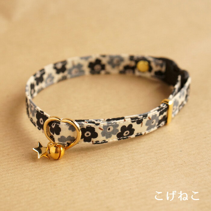 【北欧風お花の首輪(ブラック)】 / 3サイズから選べる / 猫用首輪 / 鈴の有無も選べる / 自・・・
