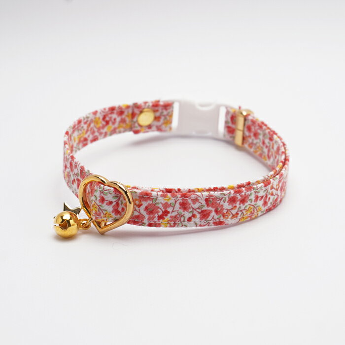 【パステルの小花の首輪(レッド)】 3サイズから選べる 猫用首輪 鈴の有無も選べる 自由に選べるパー・・・