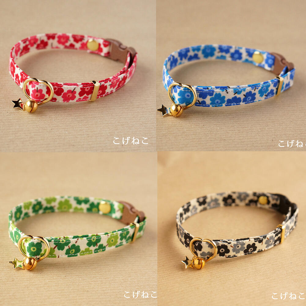 猫の手づくり首輪 こげねこ 北欧風のお花の首輪 おしゃれ 可愛い 猫に負担が少ないデザイン 安全パー・・・