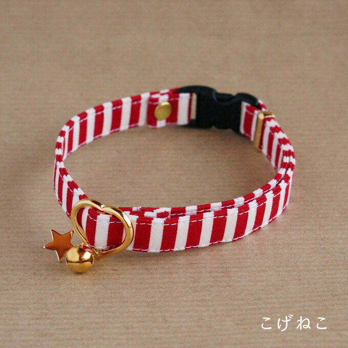 【ストライプの首輪(赤×白)】 / 3サイズから選べる / 猫用首輪 / 鈴の有無も選べる / 自由・・・