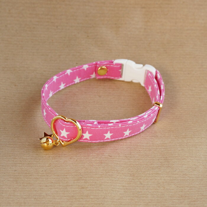 【ポップカラーの星柄の首輪(ピンク)】 3サイズから選べる 猫用首輪 鈴の有無も選べる 自由に選べる・・・