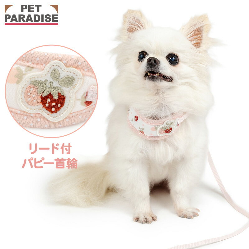 【最大2000円OFFクーポン】犬 首輪 リード付き首輪 いちご柄 小型犬 | 一体型 おでかけ お・・・