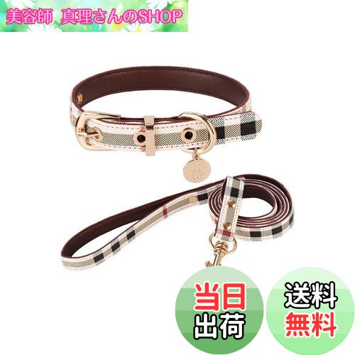 【送料無料】犬 首輪 リード かわいい チェック 首輪リードセット 犬用首輪 猫用首輪 ペット首輪 ・・・