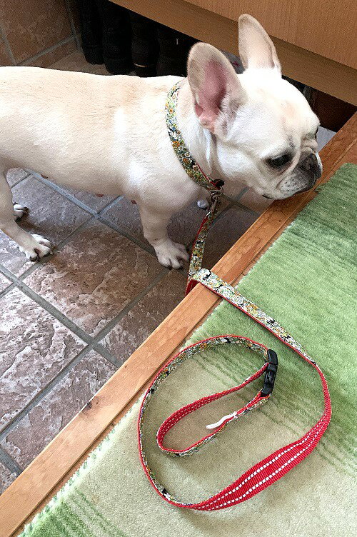 リバティフレブルプリント 首輪とリードセット 反射テープつき 小型犬用首輪 中型犬首輪 インスタ映え・・・