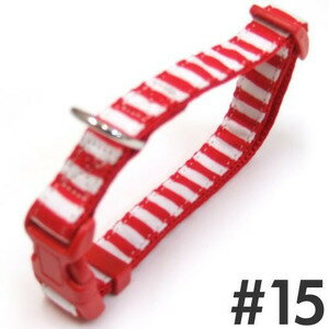 ○【ネコポス5個OK】岡野製作所 ストライプカラー #15(首回り25〜39cm) 小型犬用 レッド・・・