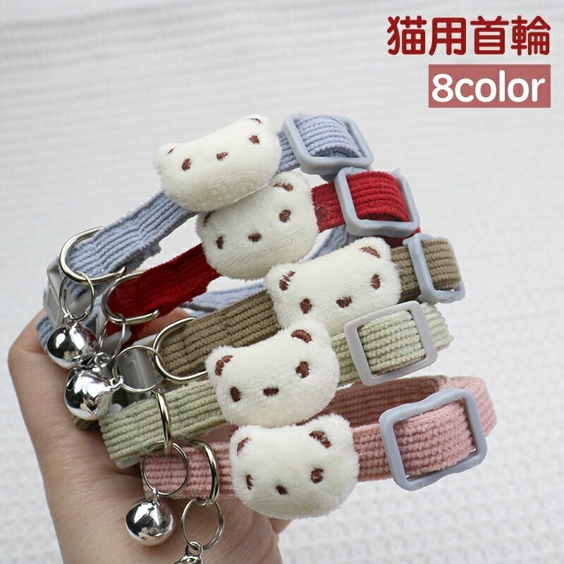 送料無料 猫用首輪 ネコ 猫 ペット用品 鈴付き バックル サイズ調整可能 コーデュロイ クマ 熊 ・・・