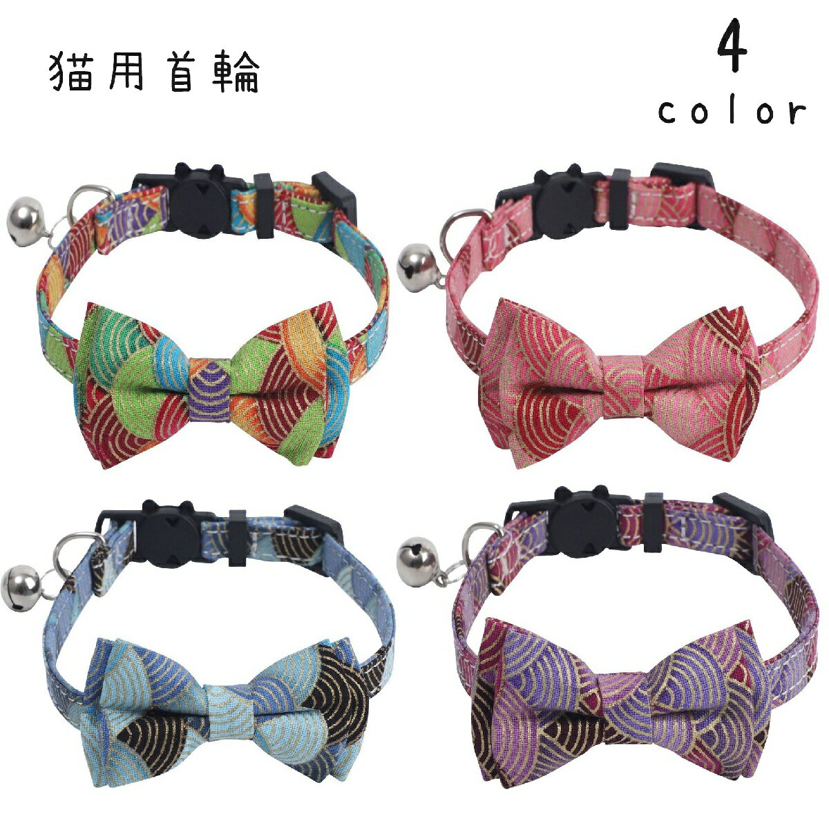 送料無料 猫用首輪 ネコ ペット用品 首飾り 鈴 蝶ネクタイ リボン チョーカー 和風 セーフティー・・・