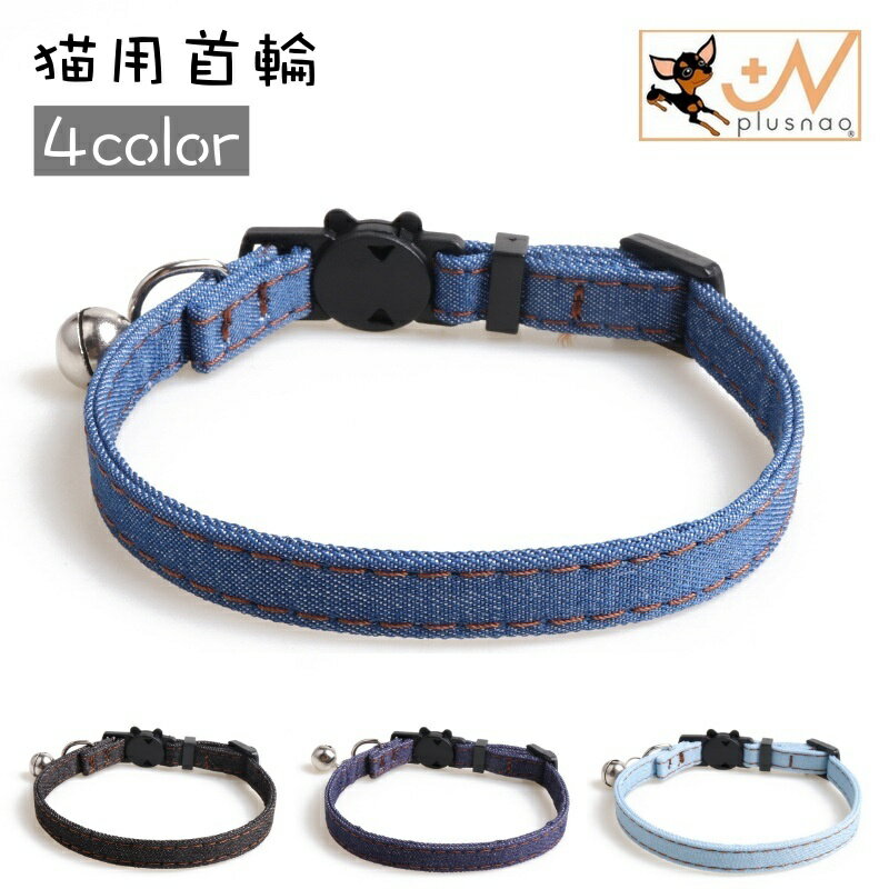 送料無料 猫用首輪 ネコ 猫 ペット用品 鈴付き バックル サイズ調整可能 デニム カジュアル お洒・・・