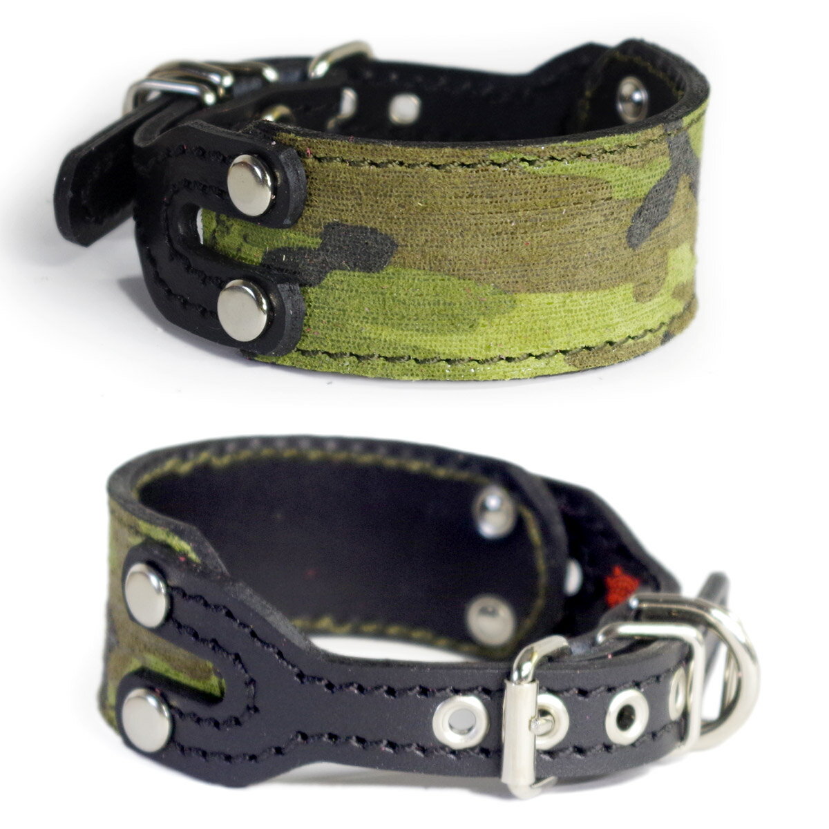 イタグレミニピン用革首輪:Small Type GFW2 (迷彩+黒)
