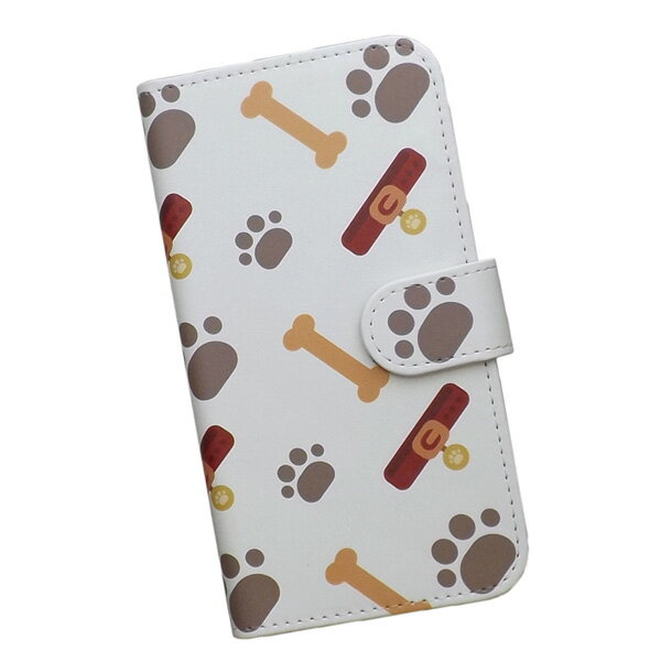 スマホケース 手帳型 全機種対応 プリントケース 犬 足跡 骨 首輪 パターン画(582)