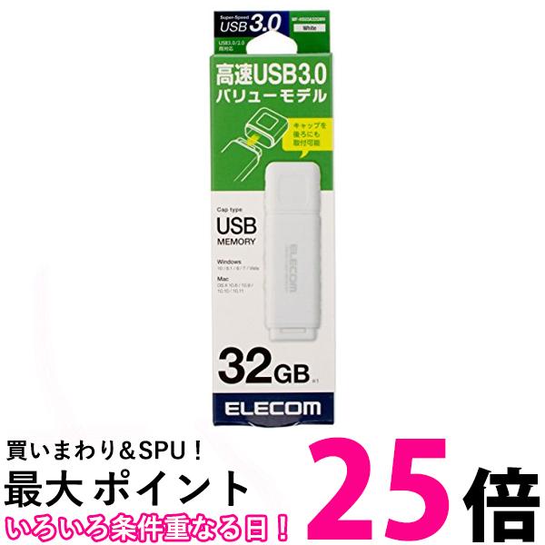 エレコム USBメモリ 32GB USB3.0 Windows/Mac対応 キャップ紛失防止 ホワイ・・・