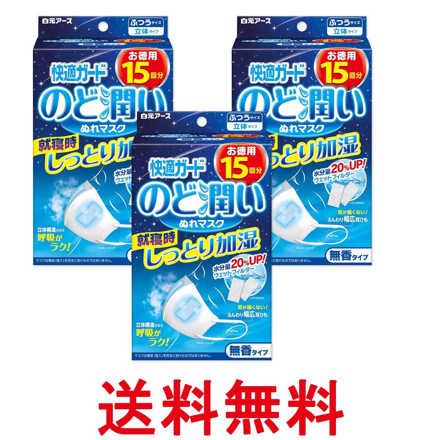 3個セット 白元アース 快適ガード のど潤いぬれマスク 無香タイプ ふつうサイズ 15セット入 送料・・・
